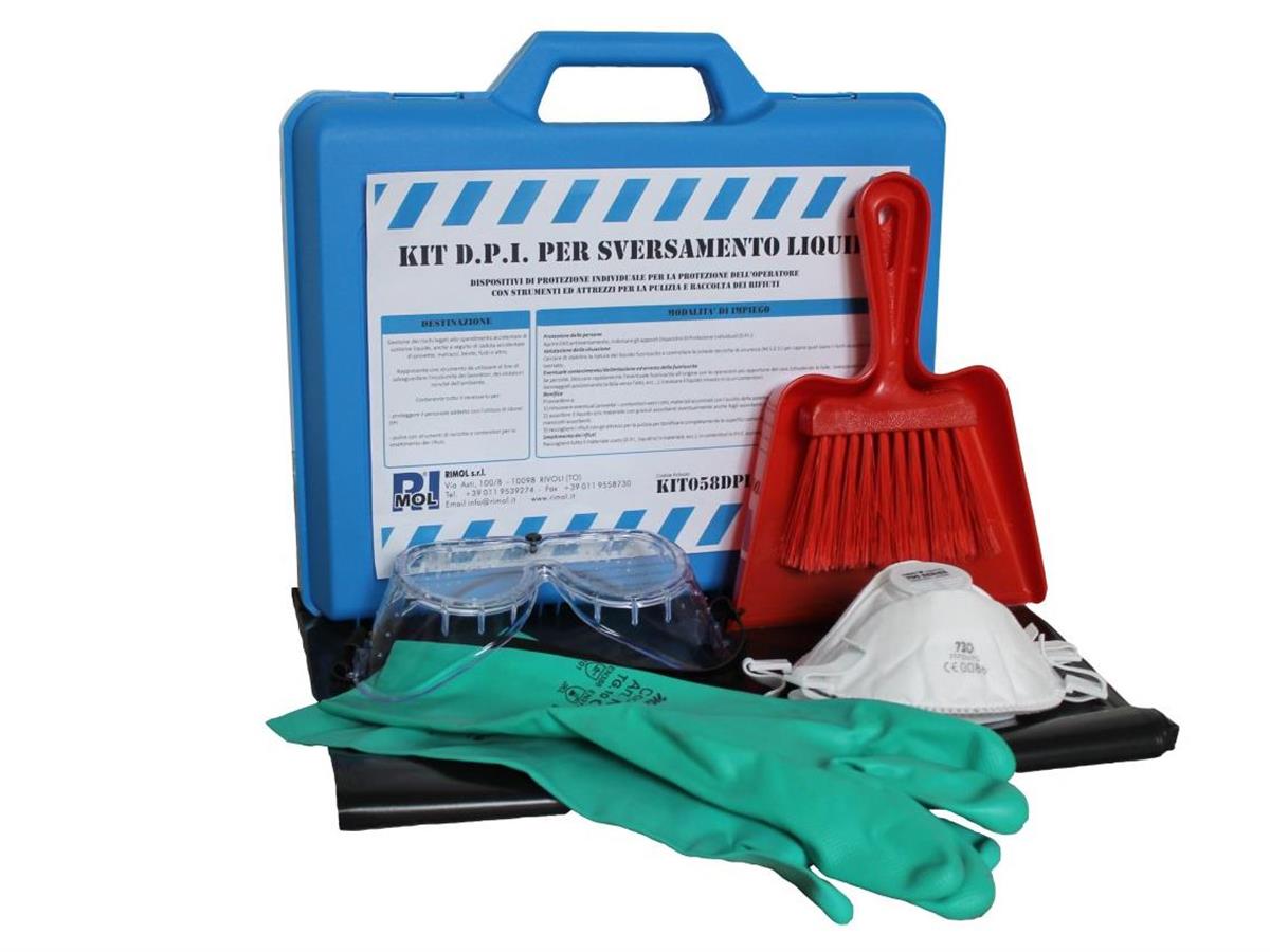 I Kit DPI per sversamento liquidi della linea Protezione di Rimol srl sono la soluzione ideale per la gestione dei rischi legati allo spandimento accidentale di prodotti liquidi.