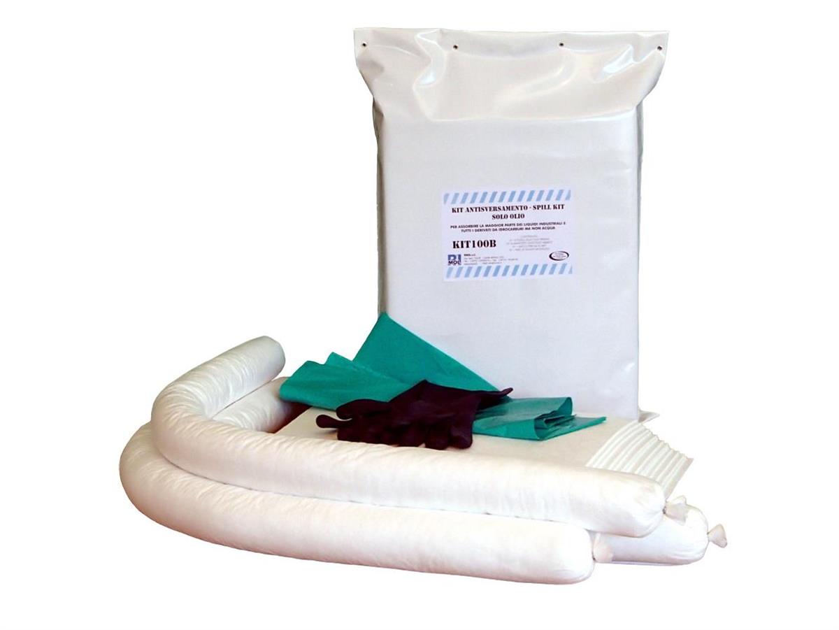Kit di pronto intervento della linea SOLO OLIO, adatti per ogni esigenza, in particolare per assorbire tutti i prodotti derivanti da idrocarburi anche in presenza di acqua.