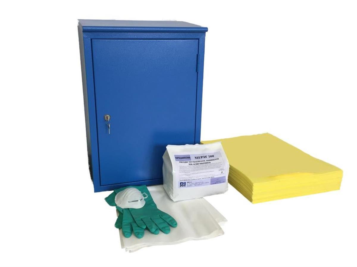 Si realizzano kit antisversamento acido solforico per ogni esigenza. Contenuto e contenitori non sono vincolanti.
